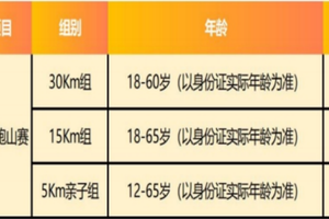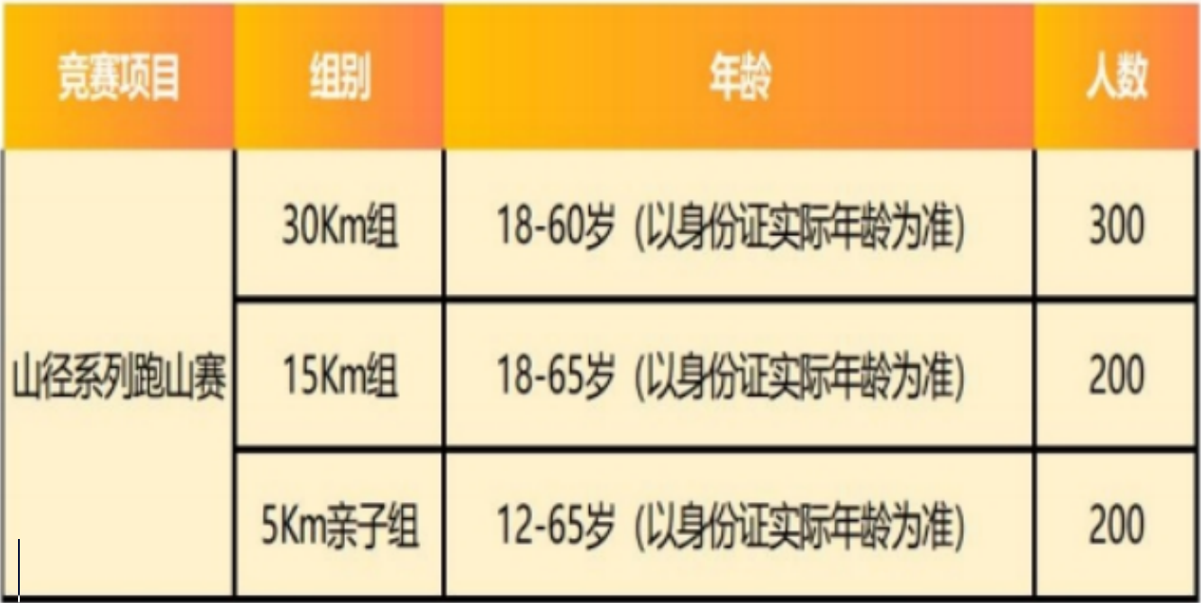 1)30km组、15km组参赛者须年满18周岁(2008年12月31日前出生), 不超过65周岁(1961年1月1日后出生);