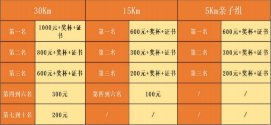 30Km:368元/人,(含比赛当日保险、比赛物品、参赛服及完赛礼品、食品补给)